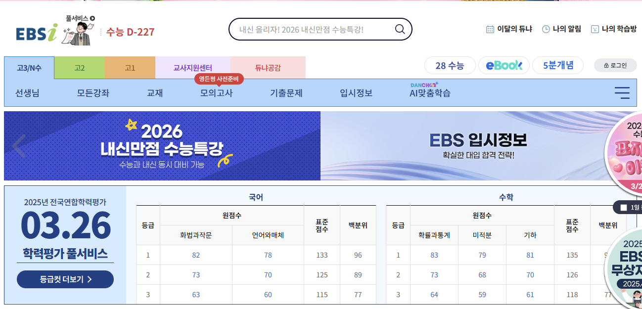 EBSi 고등학생 대상 (수능, 모의고사) 교육부 연계, 공신력 있는 자료 제공