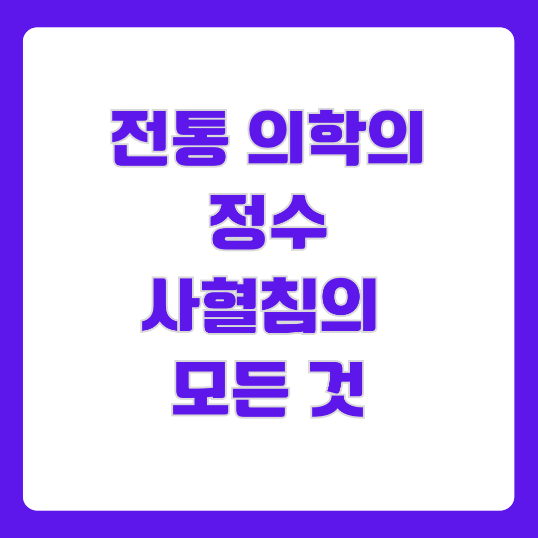 전통 의학의 정수, 사혈침의 모든 것건강정보 2025. 4. 8. 10:21